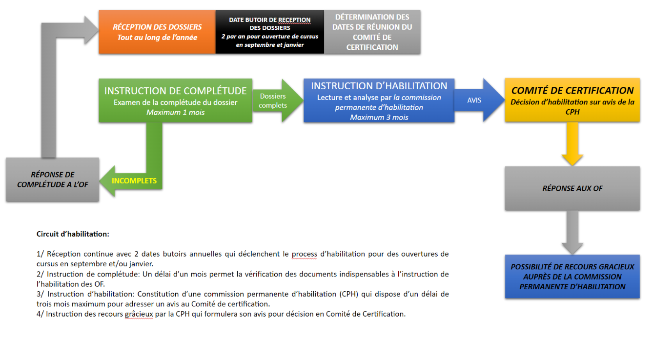 France Esports et la Fédération nationale des CFA SAT, en tant que certificateur du titre, réuniront 2 commissions par an dans le but d'habiliter de nouveaux Organismes de formation.